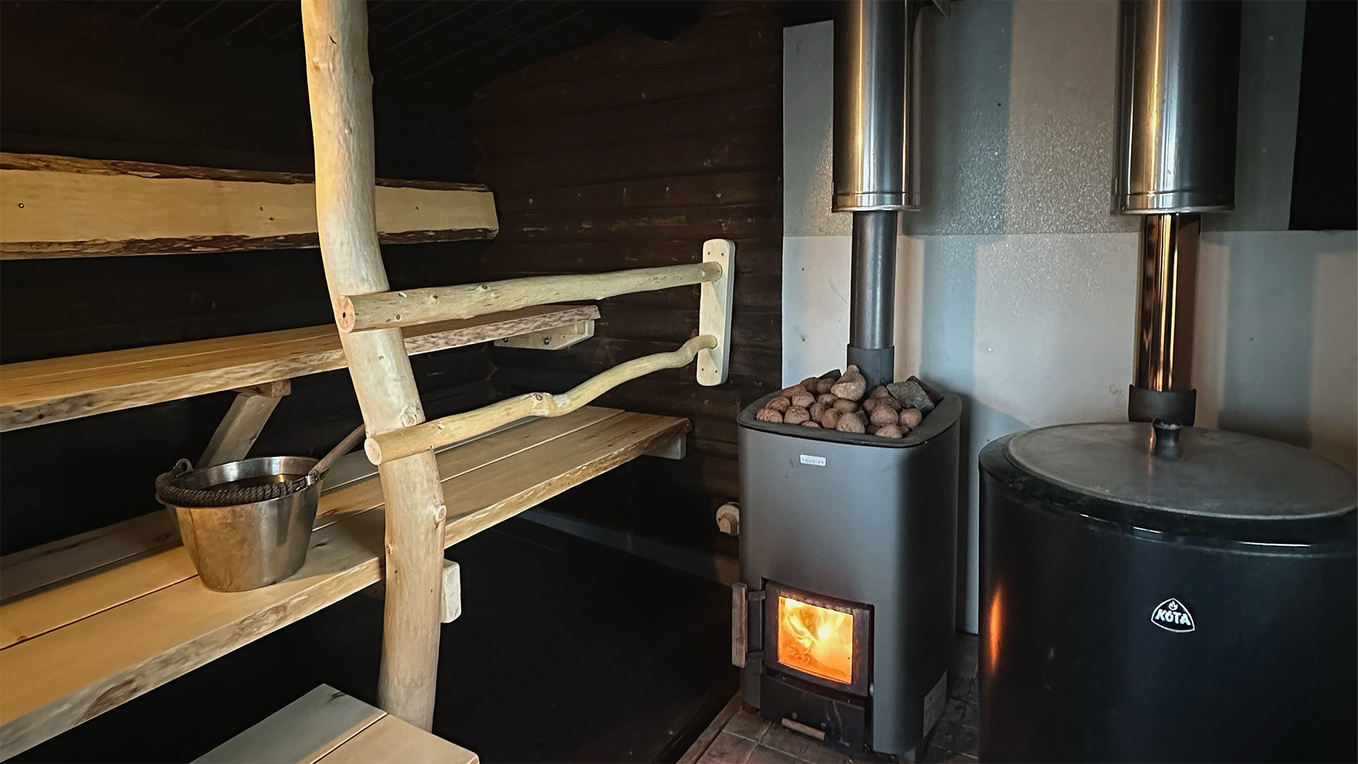 A Nordic wellness experience: sauna, Arctic bath, and outdoor hot tub by the riverside.